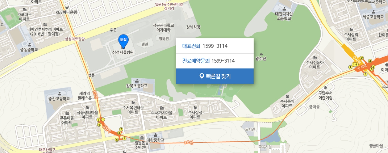 주소 : 서울특별시 강남구 일원로 81 (06351) 삼성서울병원